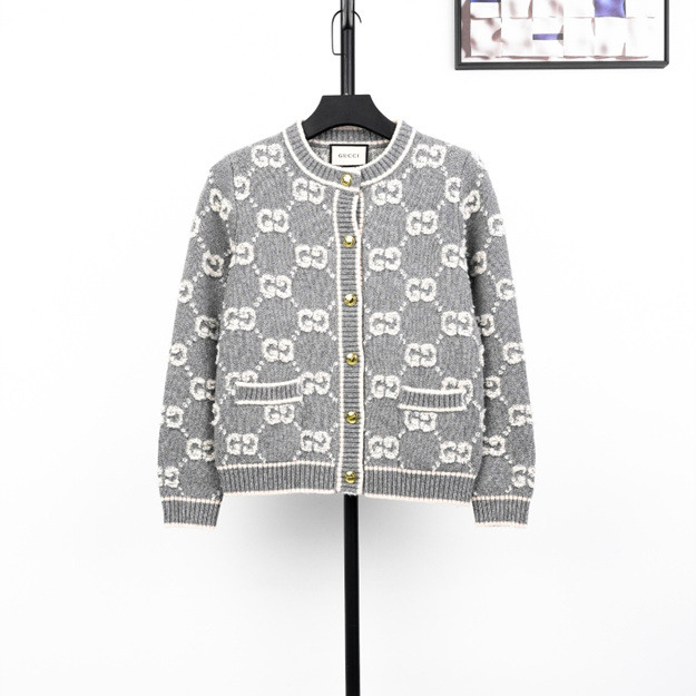 구찌 울 자카드 가디건